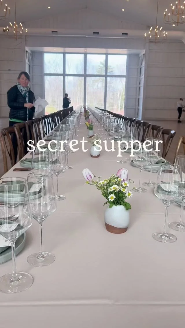 After officially welcoming everyone with a toast to set the tone for a night of creative luxury, the table was revealed from behind curtains draped over the entry to an adjacent atrium. It was set as a still life of its own, with frothy white silk tablecloths and opening bites of French cheeses, fruit, and toasts in served in silver coupes and baskets scattered between dramatic florals in rich shades of green, gold, and wine. Chef Brooke Faudree’s meal of classic French cuisine unfolded in similar style, each course presented like a perfect little painting, wine glittering against white marble walls in the warm light of the atrium, and conversation raising to gently reverberate around the room.